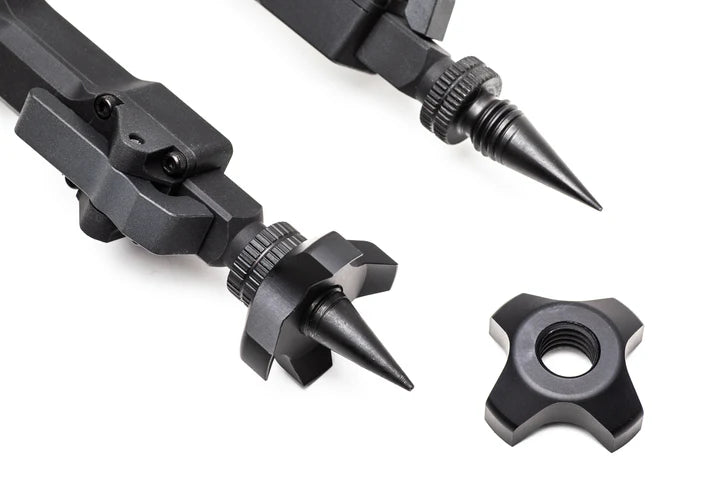 The Accu-Tac steel spikes are the perfect accessory for your bipod. They provide aggressive traction on dirt or any soft surfaces. They are CNC machined and black oxide treated. The replacement spikes have a simple screw on design that allows you to quickly change from rubber feet to steel spikes in seconds!