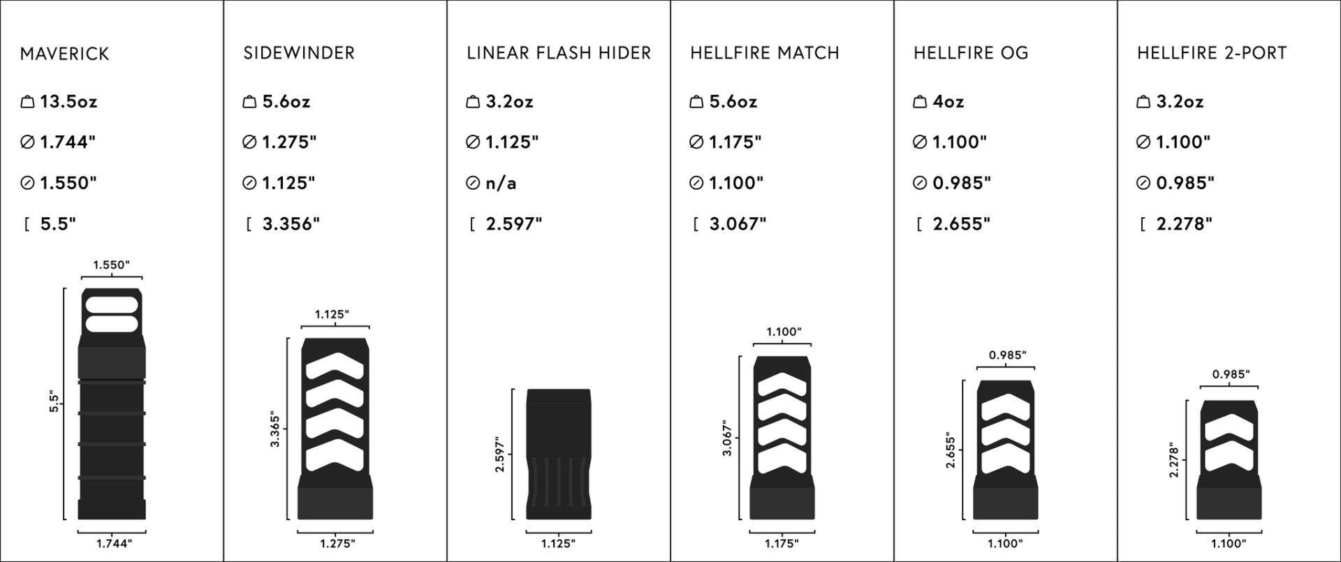 Using our patented Hellfire Self-Timing system, this brake uses the same Hellfire Universal Adapters that have been in our lineup for years, and can integrate with your Suppressor Mounts, Hellfire, Hellfire 2P and Linear Flash Suppressor. While this will be the new flagship brake, it is very much a part of our super popular Hellfire family.