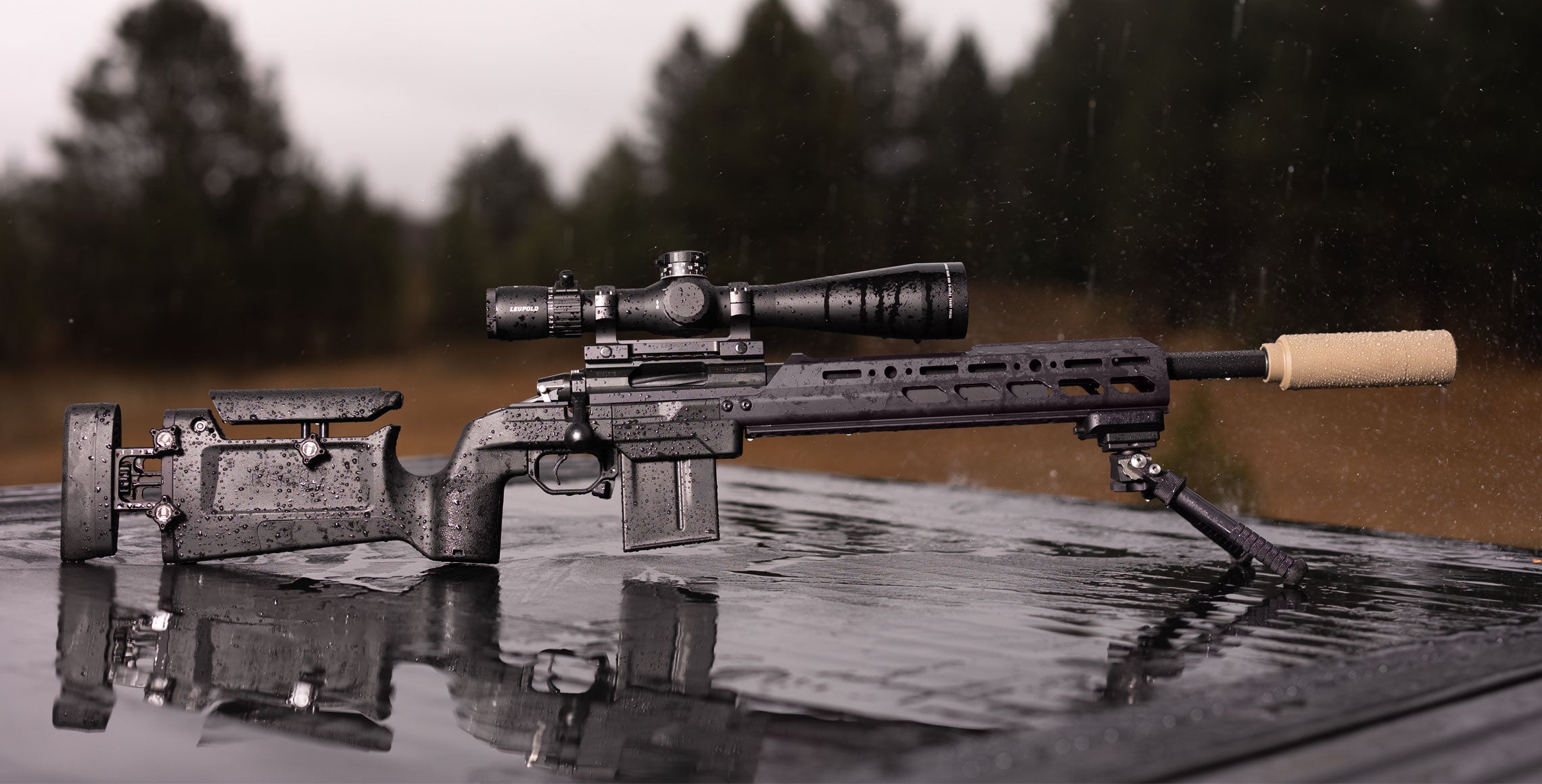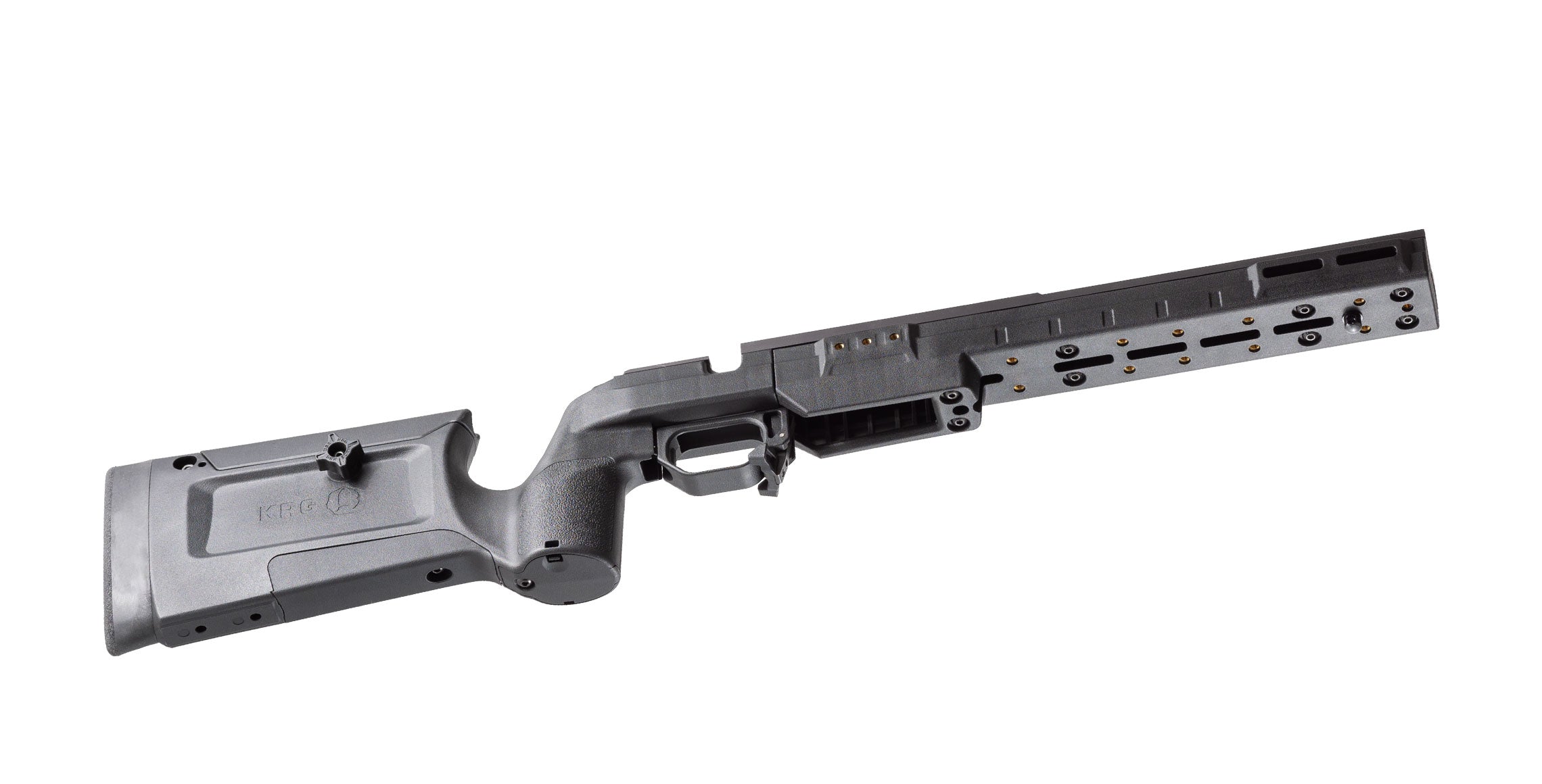 The ergonomic adjustments are just what you need to fit your frame so you can pull off the difficult shots. Of course it takes AICS mags right out of the box.