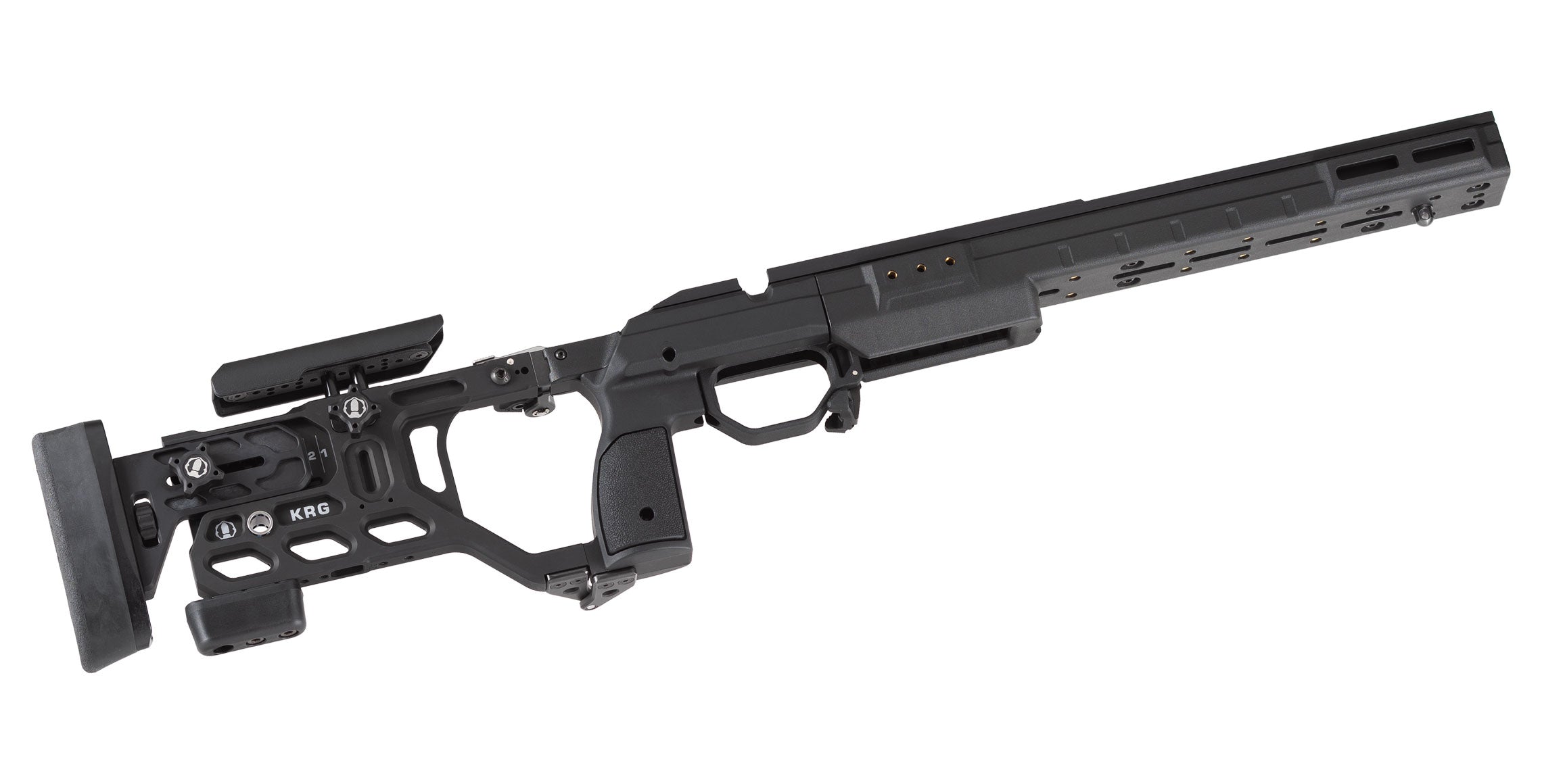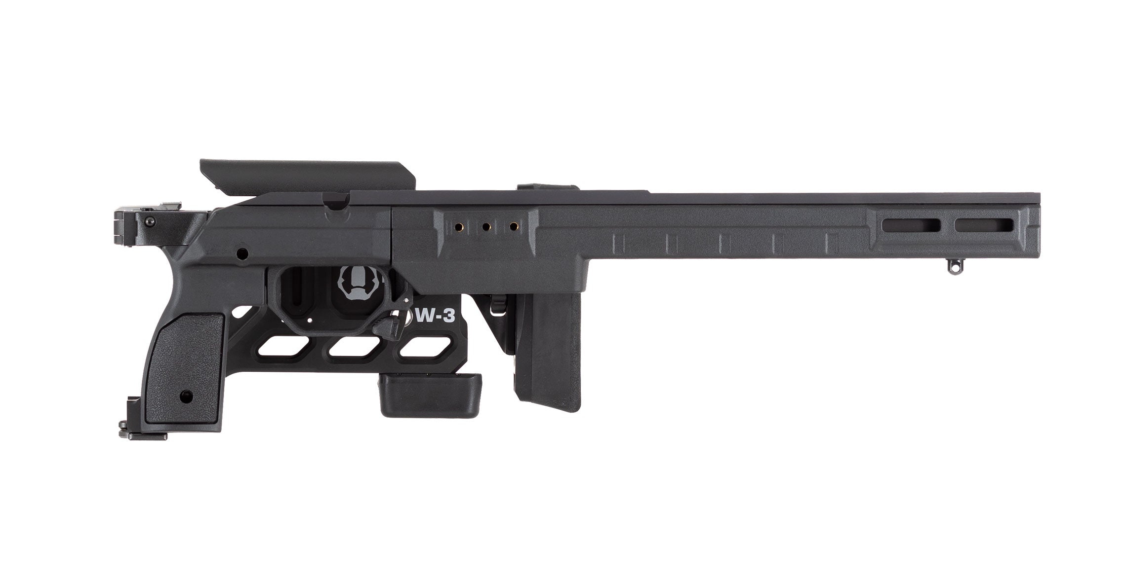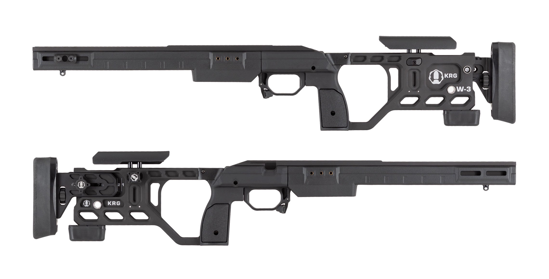 The Whiskey-3 Gen 7 is the latest refinement in our premier line of rifle chassis - combining precise aluminum bedding with tool-less adjustments, lightweight, and excellent ergonomics. Right out of the box it allows the use of AICS style magazines (not included) without any special bottom metal. The newly designed cheekpiece allows for both fore & aft as well as side to side adjustment. The folding version gets a brand new hinge system, which can be configured for left or right sided folding.