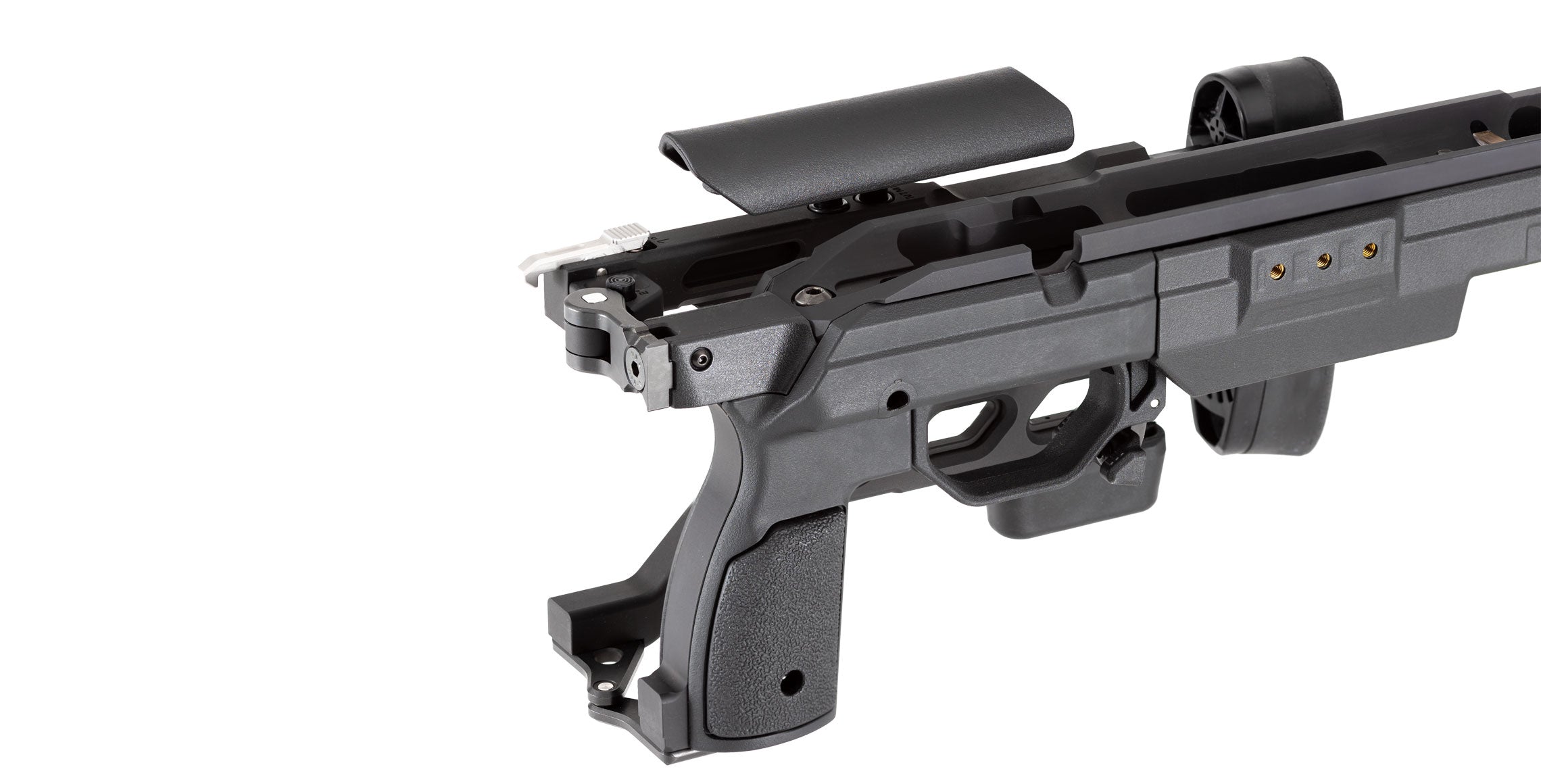 - Includes mounting points for our Two Round Quiver on either side of the magwell.
