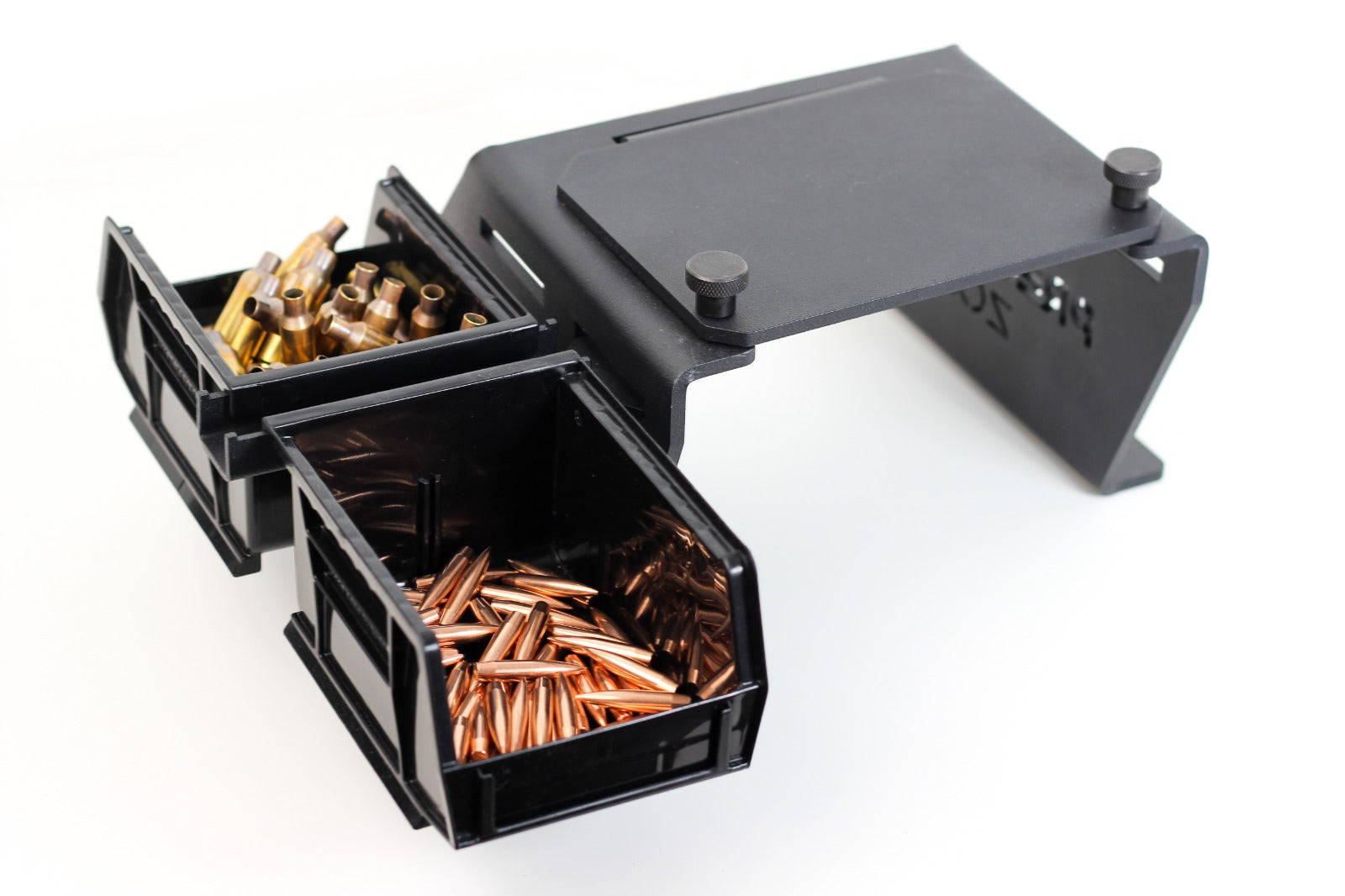 The Stack-Arm comes standard with the Versa Mount, delivering a fully integrated solution to maximize efficiency and organization at your reloading bench. It allows you to mount up to two stackable bins per side of the Versa Mount—keeping brass, projectiles, or primers exactly where you need them.