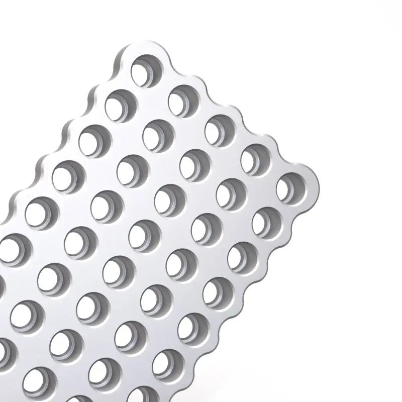 Block is machined in house from 6061-T6 Aluminum.  Dimensions are 9.5″ x 4″ x 5/8″.  Holes are 0.500″ deep and are a tight fit around the case to prevent tipping over.  Hole bottoms have a small “divot” in the very center to catch powder kernels and prevent any possible accidents with primers.