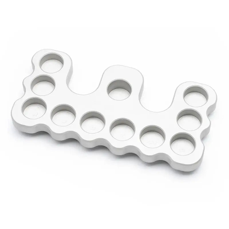• Holds the funnel with or without a head attached as well as 10 spots for heads or drop tubes to be stored